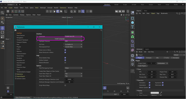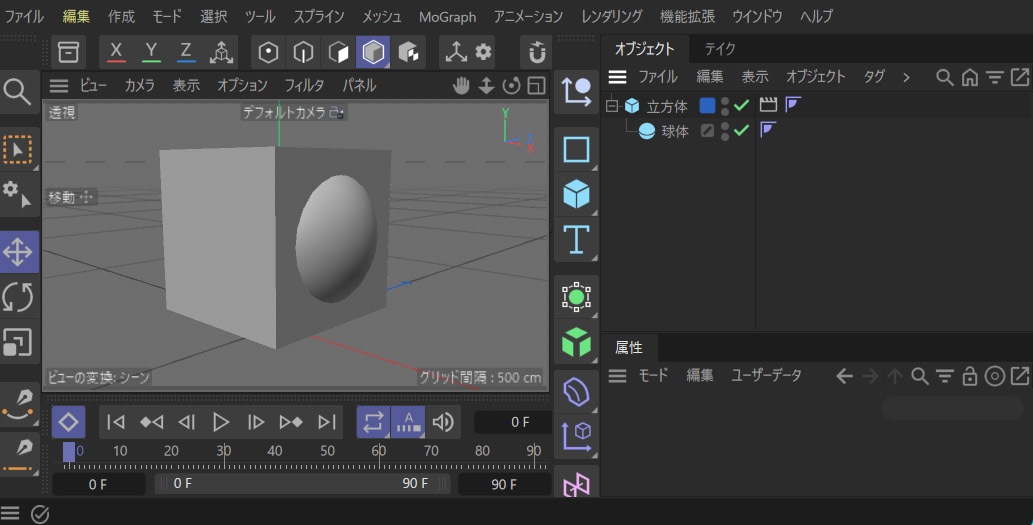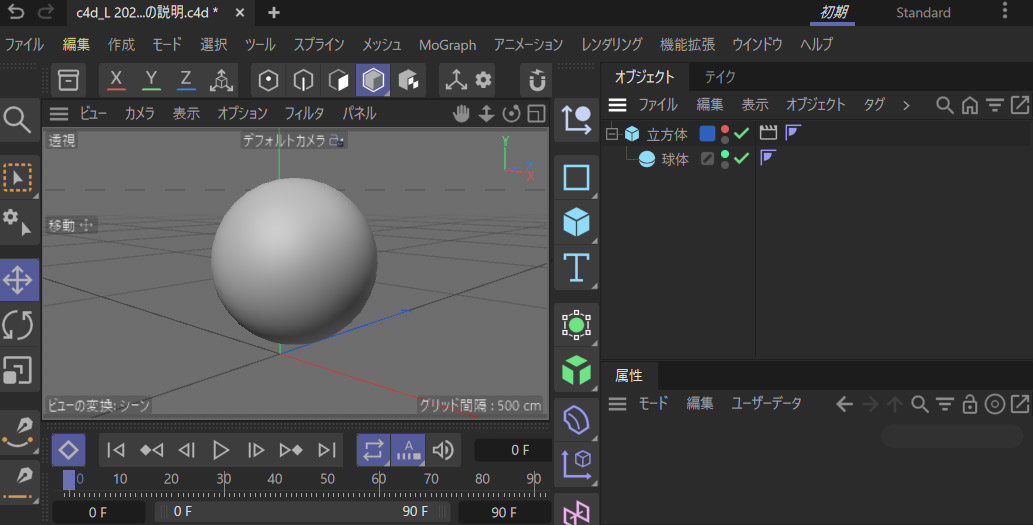 OMに出たら、それを選択して属性マネージャの【オブジェクト】欄を開きます。ふつうは OMに並んだオブジェクトを選択した時点で自動的に開きますが、出ないときは慌てず、属性マネージャの【モード】から『オブジェクト』を選択します。