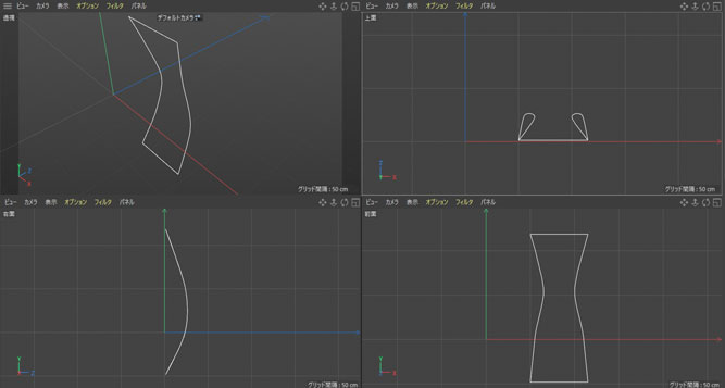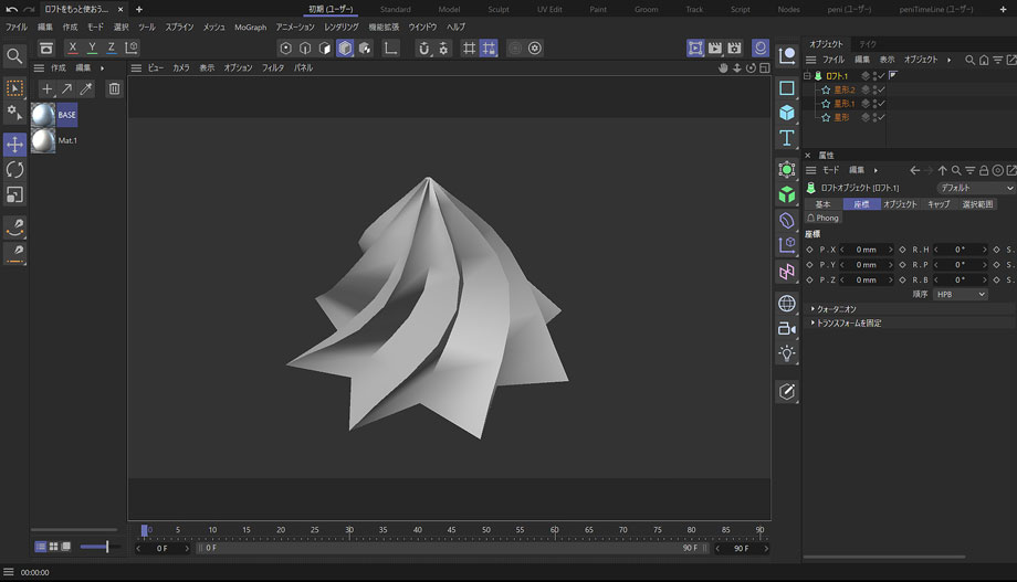 スプラインオブジェクトから立体物を作る処理の一つで、二つ以上のオブジェクト間をスムーズに繋いで立体物を作るものです。