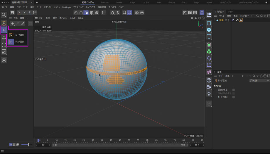 写真は【リング選択】を行っている状態です。ワンクリックで球体のぐるり 1周分の選択ができます。