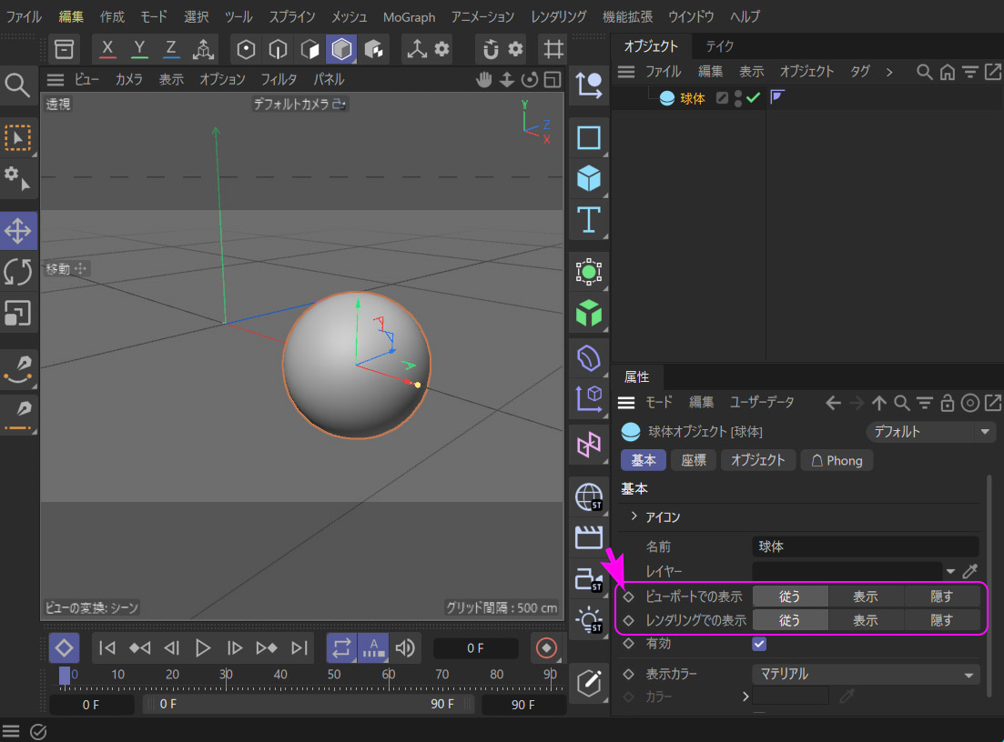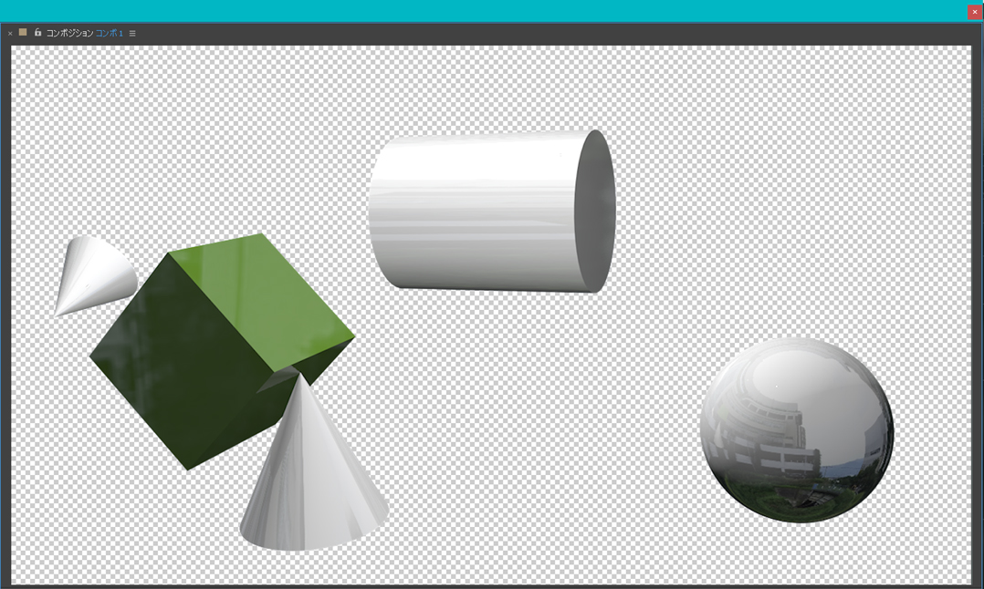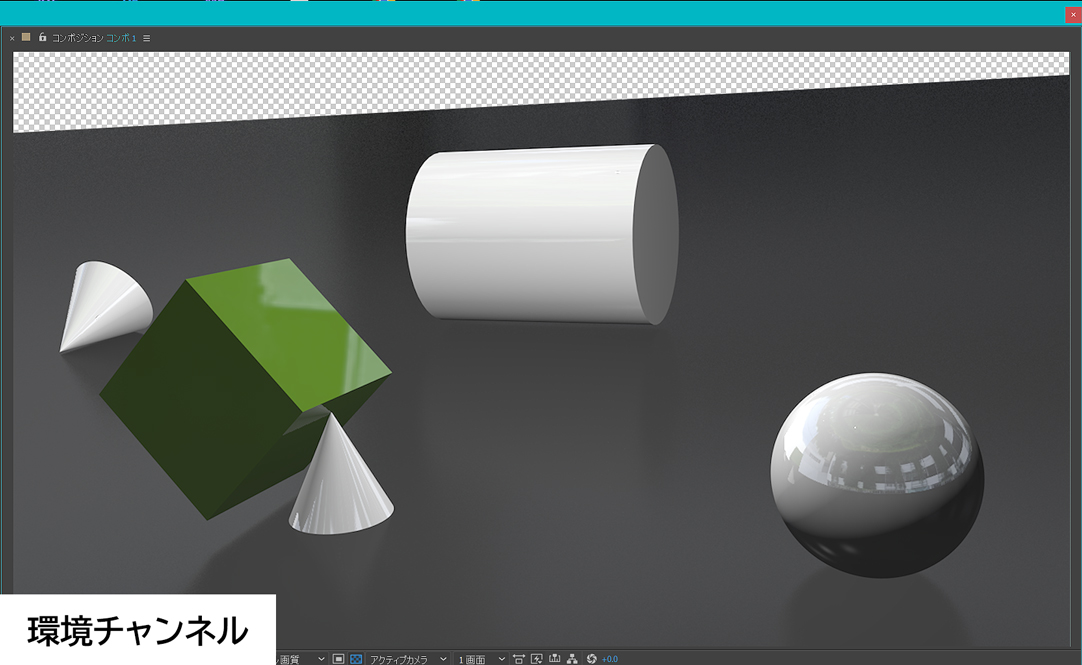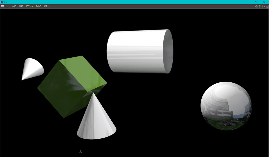 これらの方法でフェードイン、アウトしても鏡面反射の部分だけは徐々に変化せずにいきなり消滅、あるいはいきなり反射という挙動になります。これはC4d Lの仕様なのかもしれません。そのため今のところ対策案は見つかっていません。鏡面反射を重視しないものだときれいにフェードイン、アウトができています。