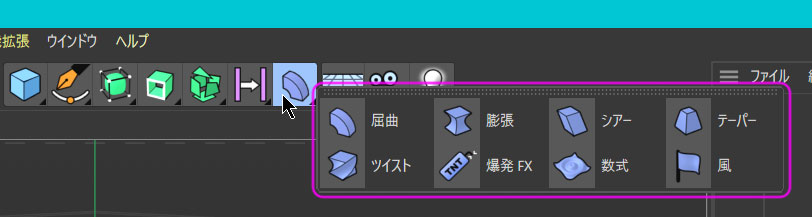 でもこれで終わりではありりません。ここからが C4d Lの本領発揮です。ケーキのクリームですので、ひねりを入れます。