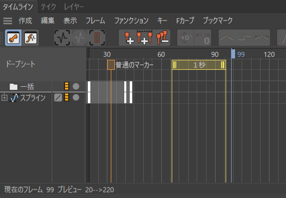 もうひとつ。キーフレーム補完がリニア(線形)にしかなりませんのでイーズは不可です。