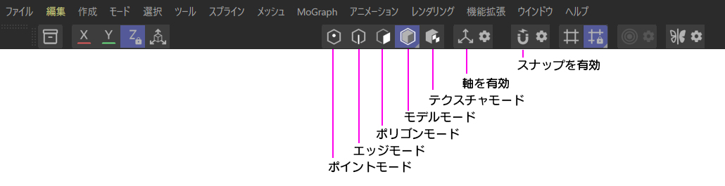 編集可能状態にするには、OMでオブジェクトを選択しておき、左端の縦アイコンの一番上【編集可能にする】アイコンを押すか、キーボードの『C』キーを押します。編集可能状態になると、OMのアイコンの絵がスプラインペン用のアイコンに変わります。