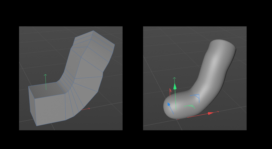 これで写真のように細かく分割されたポリゴンメッシュが映し出されます。