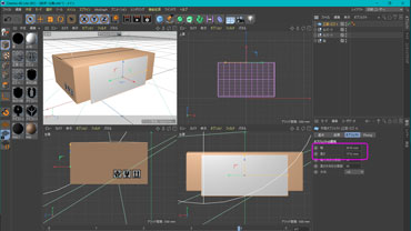 テクスチャを貼った平面オブジェクトを動かせばどこでも自由に貼れます。側面のロゴや割れ物注意のロゴなども同じように作って任意の場所に貼っています。