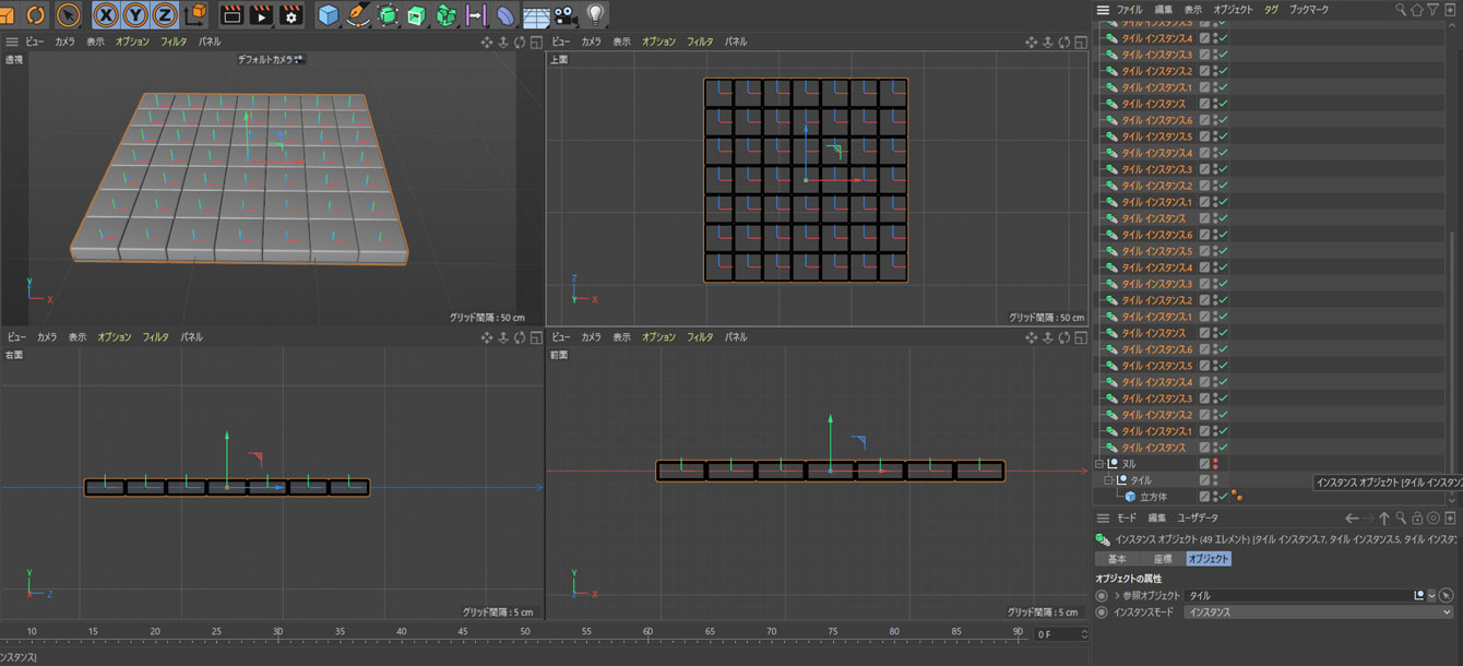 [1] 球体とタイル 49個(7×7個分)を作ります。