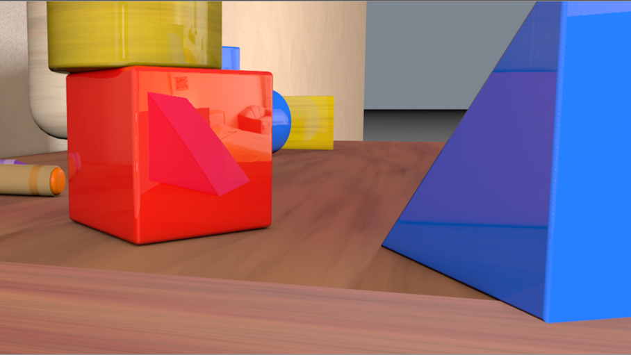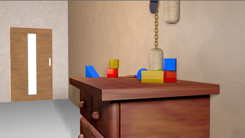 例えばこれは、机の上で子供が遊んでいたのでしょう、クレヨンや積木が散らばっているシーンです。