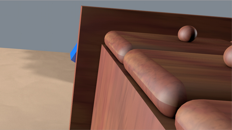 すごいローアングルですが、青い積木が台からはみ出ているところが見えています。