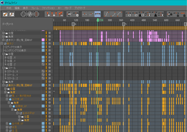 次はアニメーション制作で、作業工程の半分はここを開いているというドープシートでのショートカットです。