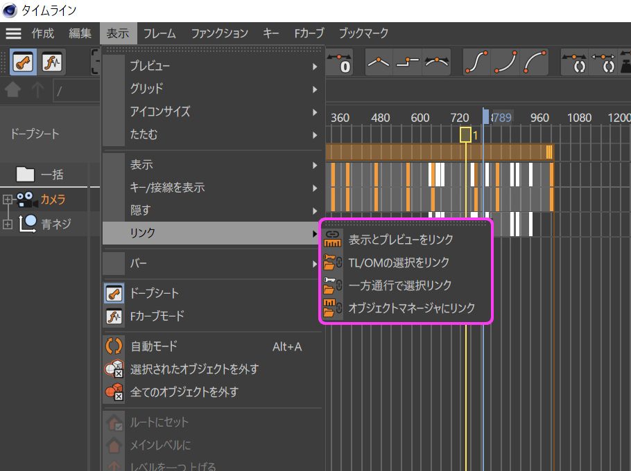 それがタイムラインの【表示】→【リンク】にある 4つの項目です。