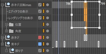 長々と書きましたが、【自動モードをオフ】にして使うメリットがあるのか首を捻りそうです。小規模なキーフレーム作業なら問題無いと思いますが、全体を俯瞰して調整するときに、キーフレームが打たれたオブジェクトがトラックに並んでいないのを知らずに修正をするのは問題です。全体を通したときに、そのオブジェクトだけずれてしまうからです。