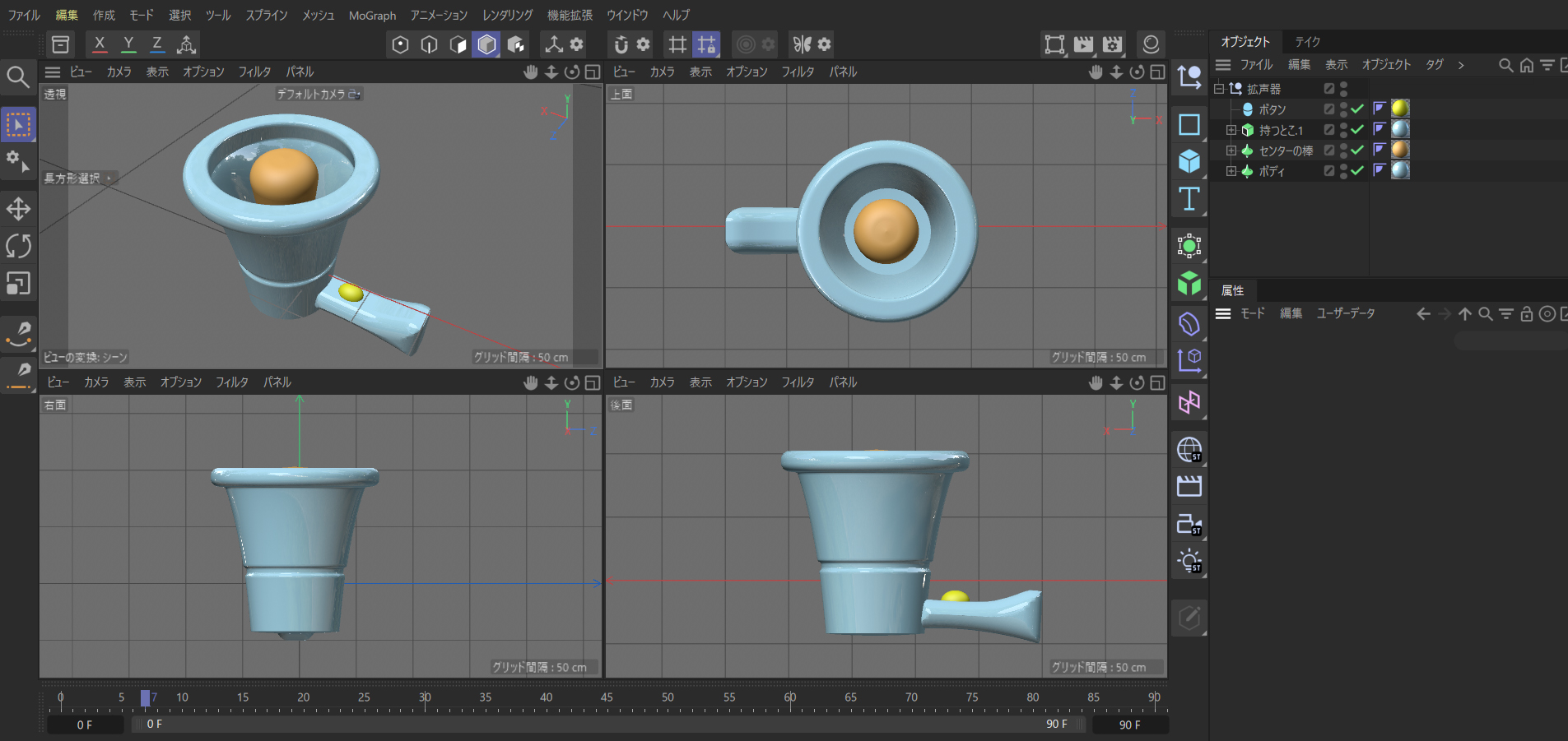 3Dをやっていくにはこの 4面ビューになれることが先決です。なぜなら、立体的に見せるエディタビューで表現できない距離感が映し出されているからです。