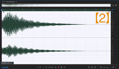 編集ソフトの例として、Auditionを使いますが、使用するエフェクトは一般的なものばかりですので参考にしてください。それと補足です。弊社で扱っている音源をそのまま流すと関係各所にご迷惑がかかりますので、コピー防止用の SEが混ざっています。これもあらかじめご了承ください。