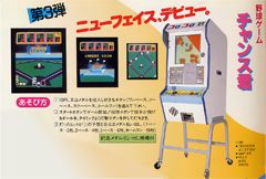 同じ基板に、音声データの入ったPCMボードを搭載した喋るプライズゲーム。 イヌさんチームとネコさんチームによる野球ゲーム。ホームインすると景品払い出し。 こちらもmame対応済みで、下記アドレスへ行くと見ることができます。しかも音声付きで。ここまでエミュレートできるとは驚きです。 http://adb.arcadeitalia.net/dettaglio_mame.php?game_name=chkun&search_id= ShortPlayボタンを押すと実際に動いている状態で見ることができます。