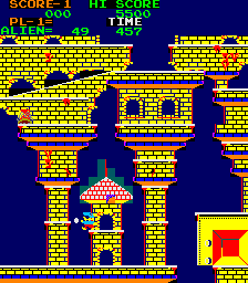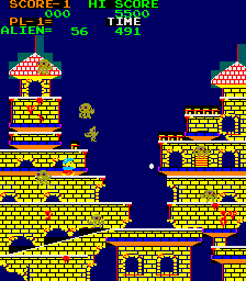 ゲームエリアのデータを圧縮と展開を瞬時にすることで、TIME PILOTのハードで64面まで可能にした。 (でも完成していませんから……)
