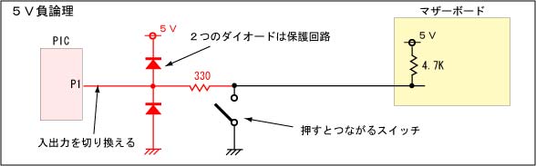 人間が押すボタンをPICのポート1本で検知とコントロールもできる回路・・・
