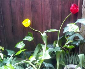 この冬、「 チューリップを植えよう 」ということになり、まだ寒い時期から綺麗な花を夢見て、せっせと植木鉢に球根を埋めていました。初めのうちは日当たりのいい二階のベランダに出して、たっぷりのお陽様にあてて水も毎日やっていたのですが、季節はまだ冬ですので北風ピューピューの日もあります。こんな冷たい風に当てたらチューリップさんがかわいそう・・・と、まだ芽も出てない芋同然の球根が入った植木鉢を1階の庭の風が当たらない場所に一時避難させました。