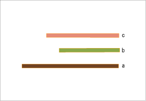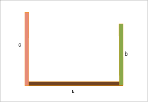てなわけで、本当にそうなるかすぐにプログラムしたくなるが、今日は時間が無いので、とりあえずイラストレータ上で、単位をピクセルにした、a=200ピクセル、b=100、c=150の棒3本を下の絵のように置いて計算をしてみた。