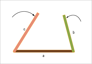 お互いの先端が接した位置で停止すれば三角形ができる。