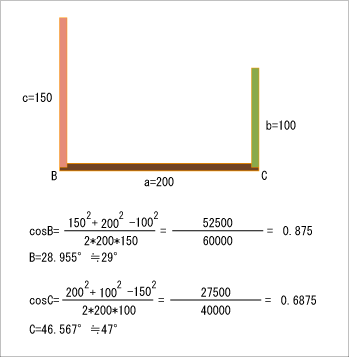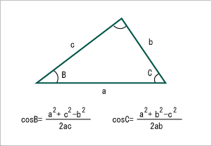 これで〝コサインB〟がでれば、アークコサインで角度が求まるぞ。