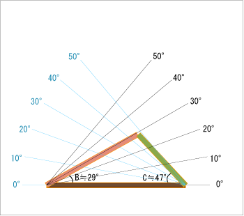 10°ずつの目盛りを付けたので検証しやすいと思う。