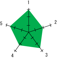 項目が5個の場合のレーダーグラフ