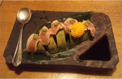 新鮮さが命、ご存知鶏刺しと、アボガドとささみ・・・。