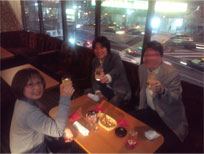 9枚のCDを制作するには、当然多くの方々の協力があって完成している。デバッグを担当していただいたクライアントの社員さんや、監修をやっていただいた先生方などなど、大勢の力添えで完成に至っている。だがその中で長期間に渡ってメインで頑張ってきたメンバーには特別の感謝、ということでガネーシャが企画してくれた呑み会である。