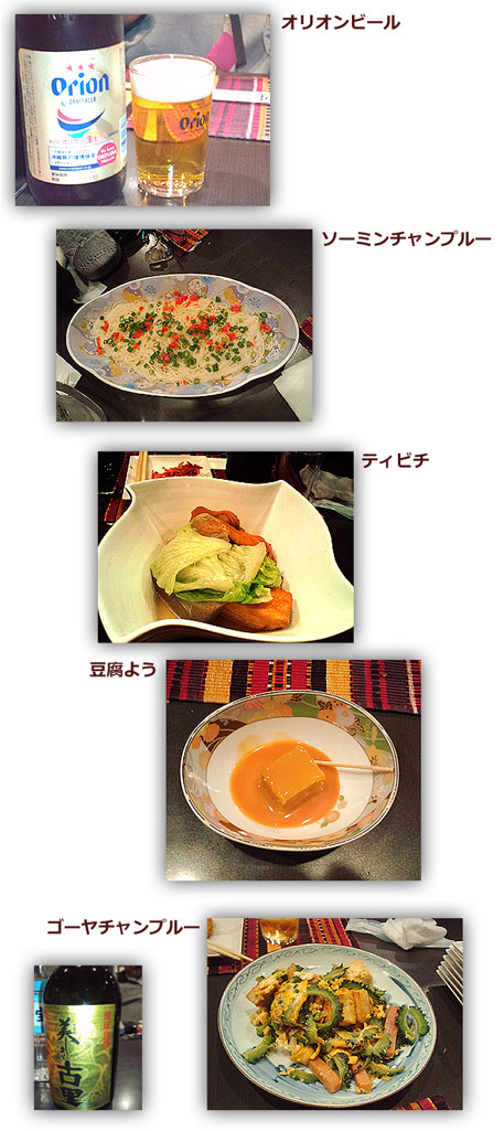 初めての沖縄料理、どんなものだろ。私の知識では"ゴーヤチャンプルー"ぐらいしか知らない。何でも玉子でとじりゃ、とりあえず沖縄料理だ、というとんでもない誤解をしている大馬鹿者ですから・・・はい。