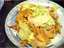 "麩チャンプルー"はキャベツの塩味が最高。ビールがすすむ進む。あっ、進んでいたのはチュンさんだけだった。あとの人はみんな泡盛のロックや水割りに切り替わっている。明日みんな仕事でしょ?だいじょうぶ?