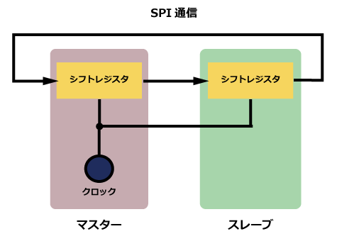 SPI通信、シフトレジスタ、マスター、スレーブ、クロック