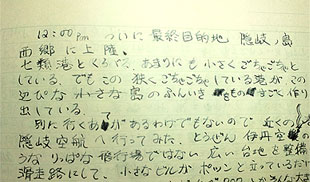 これは、1979年5月20日(日)に島根県の七類港から隠岐汽船のフェリーで、隠岐の島に渡ったところから書かれているページ。