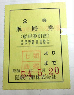 で、これがそのときの隠岐汽船のチケットの半券。