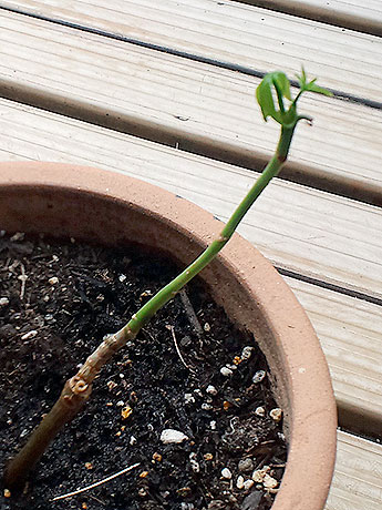 それから、またまた半年が過ぎ。それ以上ちっとも大きくならないうちに、葉が一枚落ち、二枚落ち。