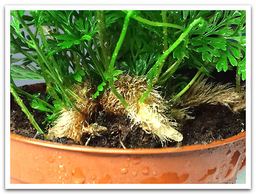 その由来はこの根の部分。ふわふわした柔らかそうな猫の尻尾みたいなものが出ている。