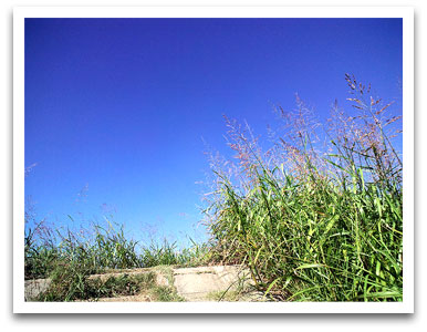 自宅の横を流れる川の土手を下から見上げて…