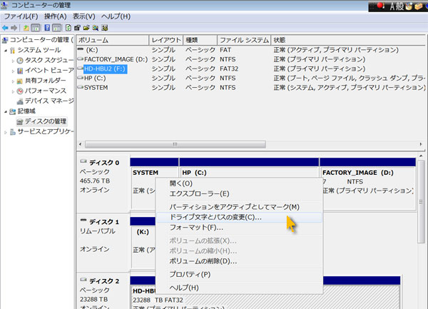 ハードディスクのドライブ番号(文字)が変ってしまった方へ・・・
