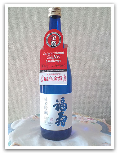 「やっと手に入れた。皆のもの頭が高ぁぁい」と出された青い瓶の日本酒。