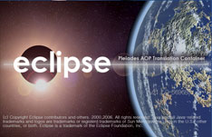 でも日本語化すると、立ち上げ画面が変わって、下記のように、Eclipseという文字と宇宙の絵に変わる…。なるほど…。