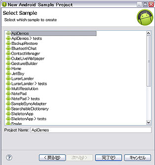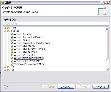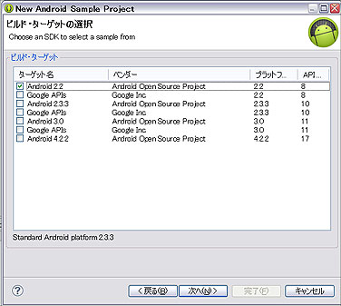 サンプルプロジェクトは、APIレベルに合わせて、 Android SDK Managerを利用して取り込むのですって…。そしたら、説明のとおりの画面が出てきます。