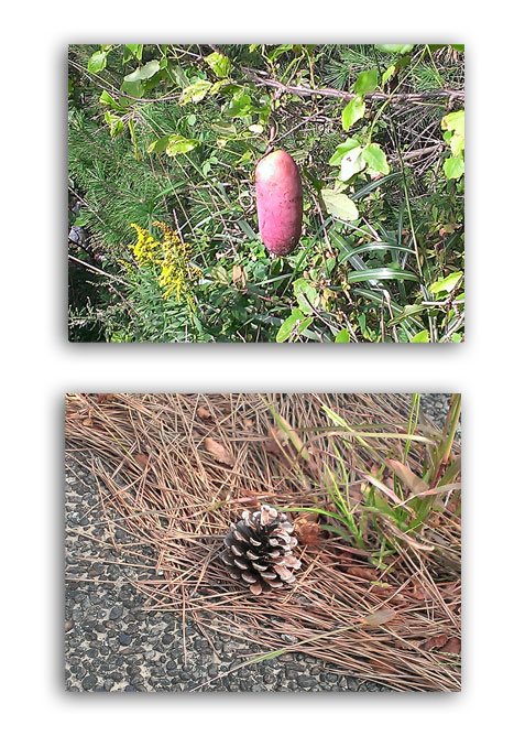 紫に色付いたアケビも発見。久しぶりに目を細めました。
