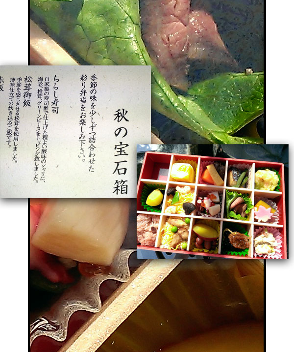 お弁当は、い○りスーパー特注の行楽弁当、『秋の宝石箱』というタイトルがついた、超びっくりお弁当です。