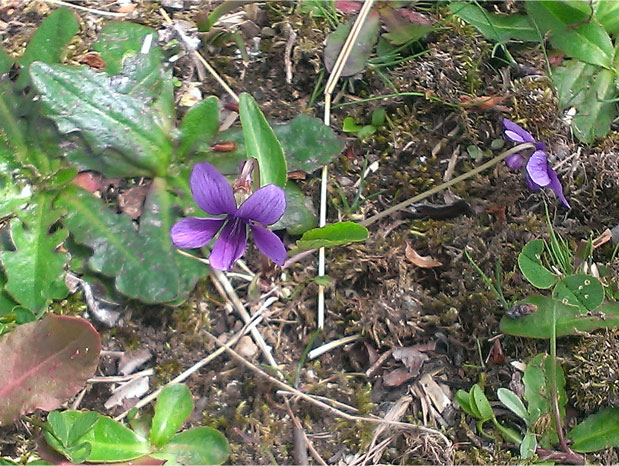 そこでスミレを見つけたのです。日当たりのいい地面に、可憐な花を二輪咲かせていました。
