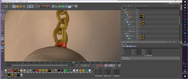 ところが C4D_Lでは再生ヘッドの移動までは同じですが、パラメータを変更したあとキーフレームを打つアイコンをクリックしないと打たれません。つい Aeのつもりで数値変更をして再生ヘッドを移動すると、元の値に戻ってしまいます。これがつらい。もう一度やり直しです。苦労して丁度いい位置に移動させて、よしとなっても瞬間に元に戻ります。この時の脱力感は何とも言えない虚しさを伴います。