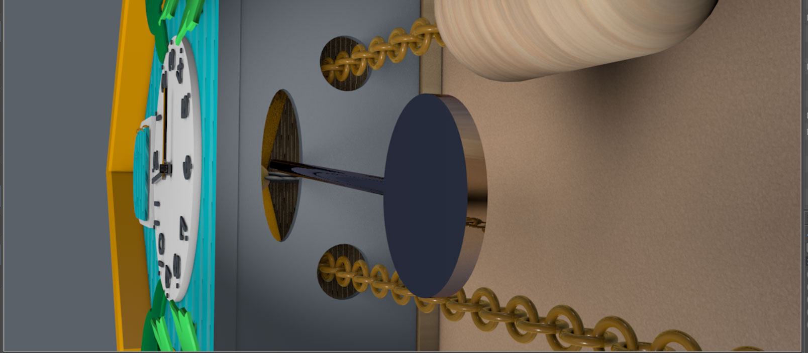 ネジ太郎が落ちた場所は鳩時計のすぐ下にある家具の上でした。