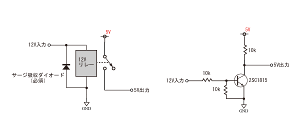 それなら、そのまま12V信号を流し込んでも大丈夫じゃないかというと、それはそれで精神的によくないわけでして、微電流の場合は問題がありませんが電流値が上がると、ダイオード破壊が起きて危険度が増します。